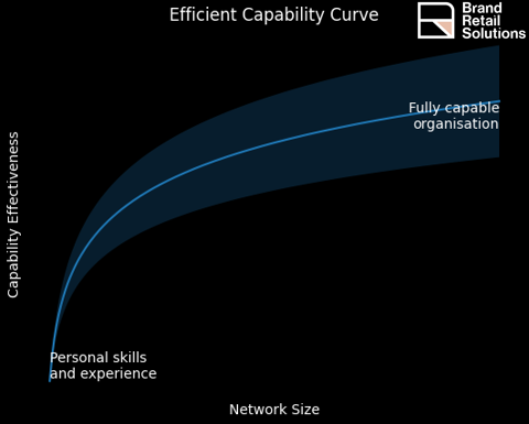 Below we highlight the required transition from personal skills and experience to institutional capability as store network size increases. Performance is maximised when capability investment stays within the efficient zone, matching organisational complexity without creating either capability gaps or unnecessary drag.